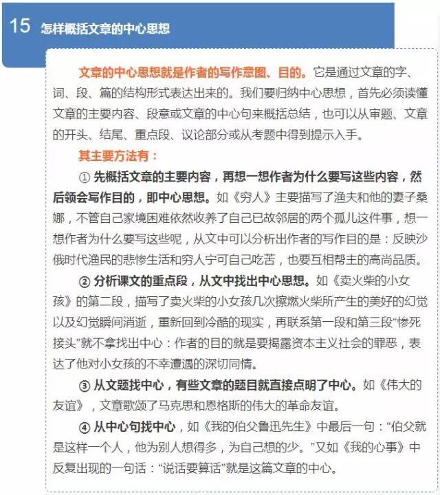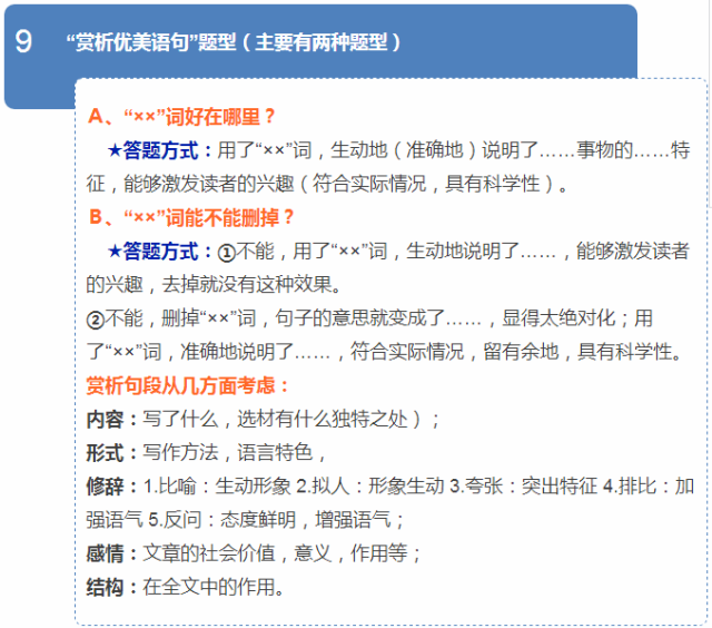 有很多同学在做假期作业时,对于阅读理解题还是存在着不少困惑,根据很多同学一致反映出的问题,一位资深语文老师总结出了18种阅读理解常见题型,并给出了答题技巧和方法,这些方法非常灵活和实用,快来试试吧。